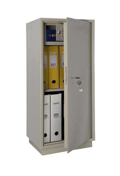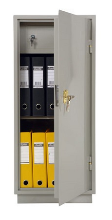 Бухгалтерский шкаф КБС-41Т от производителя ПАКС как и все бухгалтерские шкафы данной серии, предназначен для хранения офисной и бухгалтерской документации, электронных носителей информации, учредительных документов и прочих необходимых вещей не только в бухгалтерии, но и в офисах, архивах, на производстве и в прочих коммерческих помещениях. Модель КБС-41Т пользуется достаточно большим спросом, имеет хорошую репутацию у покупателей, достаточно надежна и долговечна. Корпус шкафа изготовлен из стального листа толщиной 1.5 миллиметра, двери усилены панелью коробчатого сечения из стали толщиной 0.8 миллиметра. Кроме этого стоит отметить, что бухгалтерский шкаф КБС-41Т комплектуется кассовым отделением/трейзером, а также съемной регулируемой по высоте полкой. Шкаф имеет подиум (подставку) высотой 47 мм для возможности размещения его вплотную к стене. Закрывается КБС-41Т врезным 8ми сувальдным ключевым замком Про Сам, 2 ключа поставляются в комплекте. Шкаф окрашен полимерной краской серого цвета, неброской и достаточно приятной взгляду, модель поставляется в собранном виде.